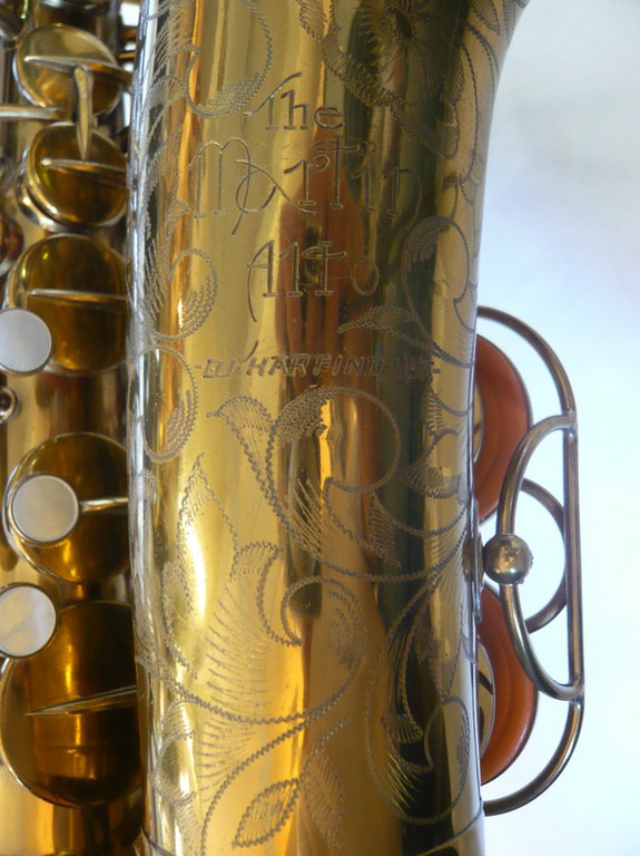 Altsaxophon Martin Committee, dunkler Honiglack, große Gravur, verstellbare Daumenschraube, generalüberholt, originaler Koffer